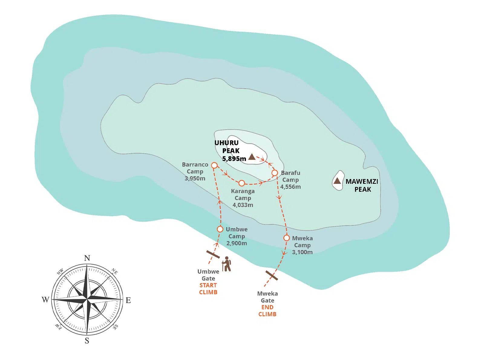 The Umbwe route is the toughest way to climb Mount Kilimanjaro. It rises very fast, so your body has little time to adjust to the high altitude. This route is quiet and less crowded, but it is also harder to reach the summit. It is best for strong and experienced hikers who can handle altitude quickly. route.